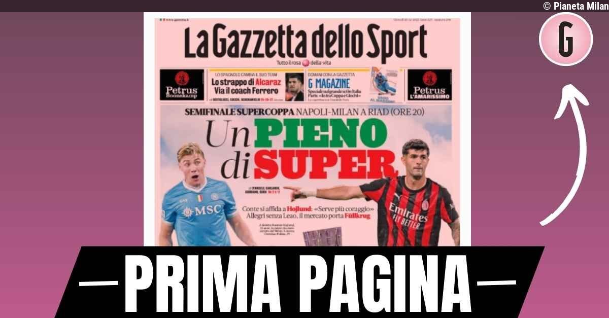 Pianeta Milan18/12/2025 10:45Prima pagina Gazzetta dello Sport: "Napoli-Milan, un pieno di Super"... Leggi altro su Pianeta Milan
