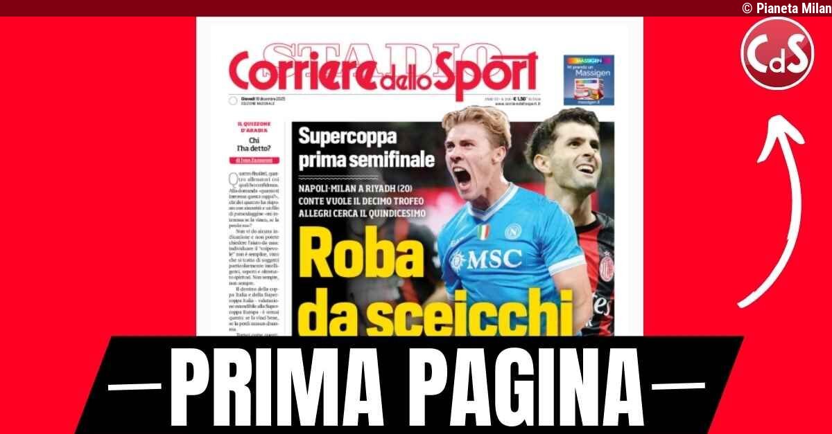 Pianeta Milan18/12/2025 10:50Prima pagina Corriere dello Sport: "Napoli-Milan, roba da sceicchi"... Leggi altro su Pianeta Milan